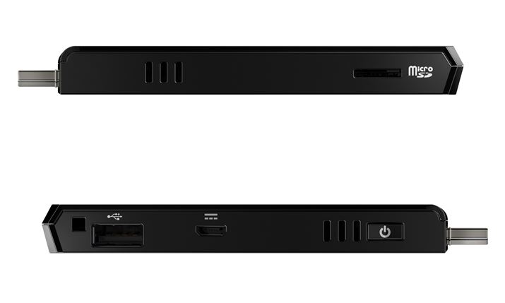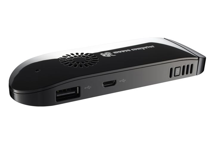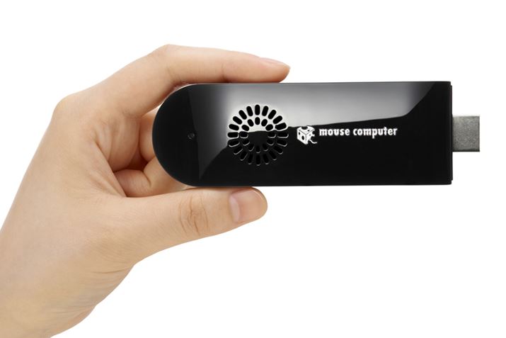 元祖スティック型パソコンといえば、マウスコンピューターが昨年末に発売した「m-Stick MS-NH1」だ。USBメモリーのような形状だが、先端にはUSB端子ではなく、HDMI端子を備える。パソコンにUSBメモリーを接続するように、HDMI入力端子を備えた液晶テレビやプロジェクターに接続して利用する。これだけのコンパクトさを実現するために、タブレット向けのパーツを採用。デスクトップパソコンに分類されるが、基本性能は2万円前後で買えるタブレット並みと考えよう。価格.com最安価格は19,199円。