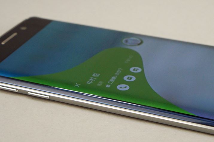 続いて、エッジディスプレイの詳細に迫ろう。本機のディスプレイは1440×2560のWQHD表示に対応するサムスン製の有機EL「Super AMOLED」だ。長辺部分が両方とも曲面となっている。