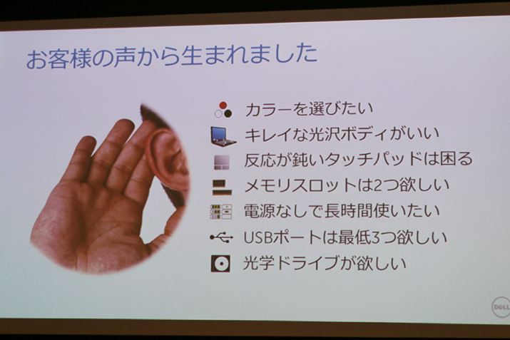 新しいInspiron 5000シリーズは、ユーザーの声を反映しながら開発したという。USBポートを3基備えるなど、細かな使い勝手を重視したモデルに仕上げられている