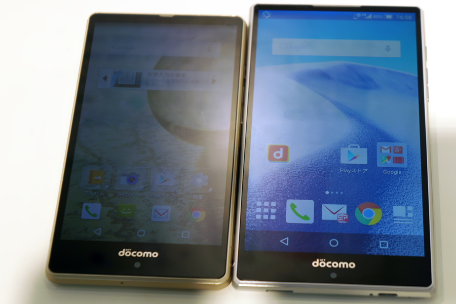 AQUOS ZETAを右において大きさを比べてみた。本機のサイズは、約71(幅)×133(高さ)×9.7(厚さ)mmで、重量約139gとなっており、特に横幅が5mmも狭くなった