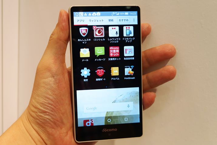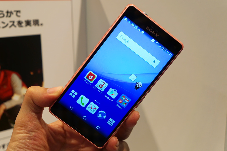 Xperia Z4とともに発表されたXperia A4 SO-04G。HD表示に対応する約4.6インチのトリルミナスディスプレイ for mobileを備えた、今回NTTドコモから発表されたスマートフォンでは最小のモデルとなっている。搭載されるCPUはクアッドコアの「Snapdragon 801 MSM8974AC(2.5GHz)」に、2GBのメモリー、16GBのストレージを組み合わせている。こちらもOSはAndroid 5.0だ