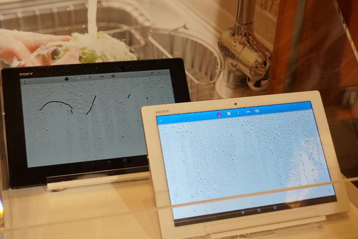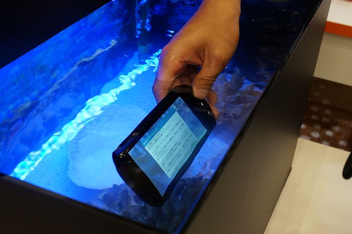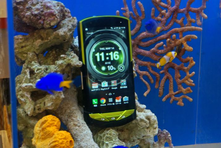 水中撮影に対応したカメラを新たに搭載。水中に浸けると、自動的にカメラが画質やゆがみを補正する水中モードに切り替わる。もちろん淡水および海水の両方に対応。水中ではタッチパネルが動作しないため、シャッターは側面のプッシュボタンで行う