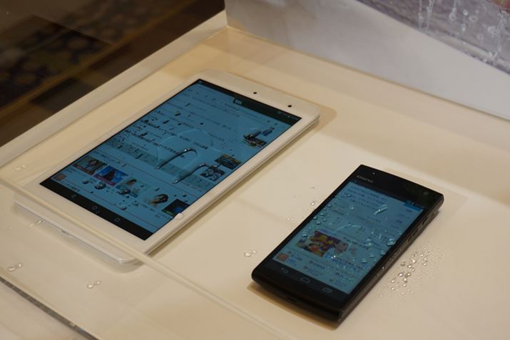 発表会に先駆けて発売されたサムスンのGalaxy S6 edgeも夏モデルとして展示されていた。今回発表された各機種と比べても、少々クセのある曲面ディスプレイや、防水性能は搭載されていないものの、画面解像度や処理性能などのハードウェア性能では、屈指の高性能モデルだ。詳細は復活したスペック番長!? 話題の「Galaxy S 6 Edge」レビューを参照