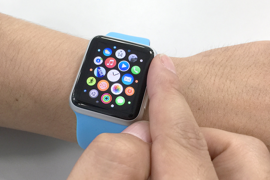 文字盤を表示した状態でデジタルクラウンを押すとホーム画面が表示される。回すとスクロールや拡大/縮小の調整が可能
