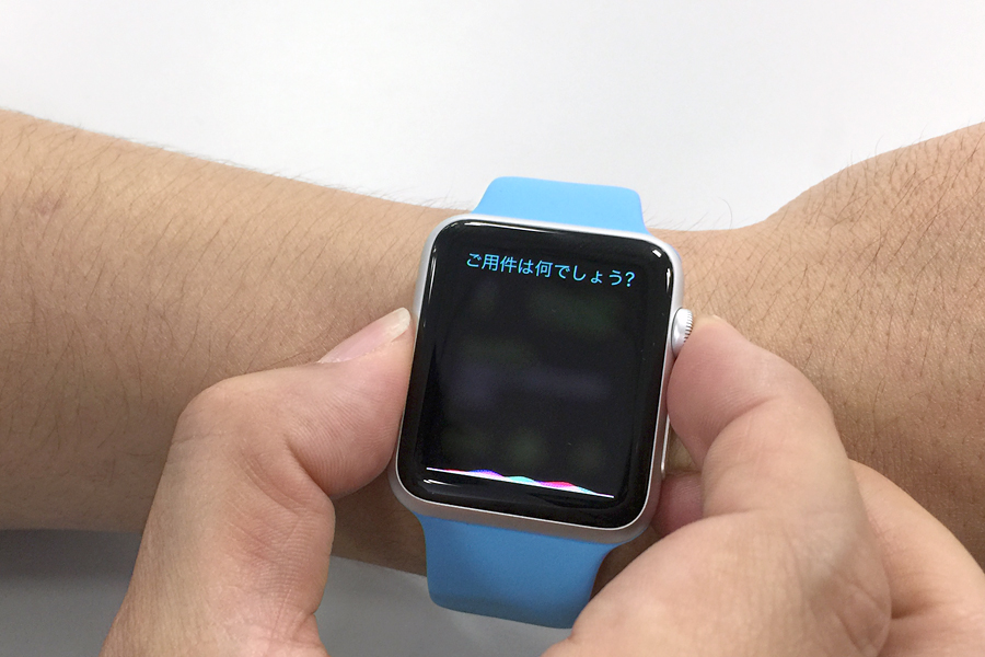 デジタルクラウンを長押しするとSiriが起動する。Siriは、文字盤を表示した状態で「ヘイ、シリ」と話しかけても起動する