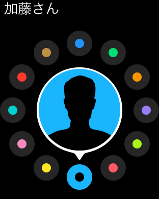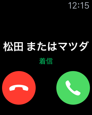 着信画面。電話に出られない場合は、Apple Watchの画面を手で覆うと留守番電話などに切り替わる