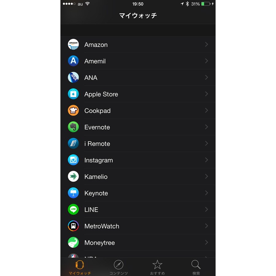 Apple Watchアプリの下に対応アプリの一覧が表示されている