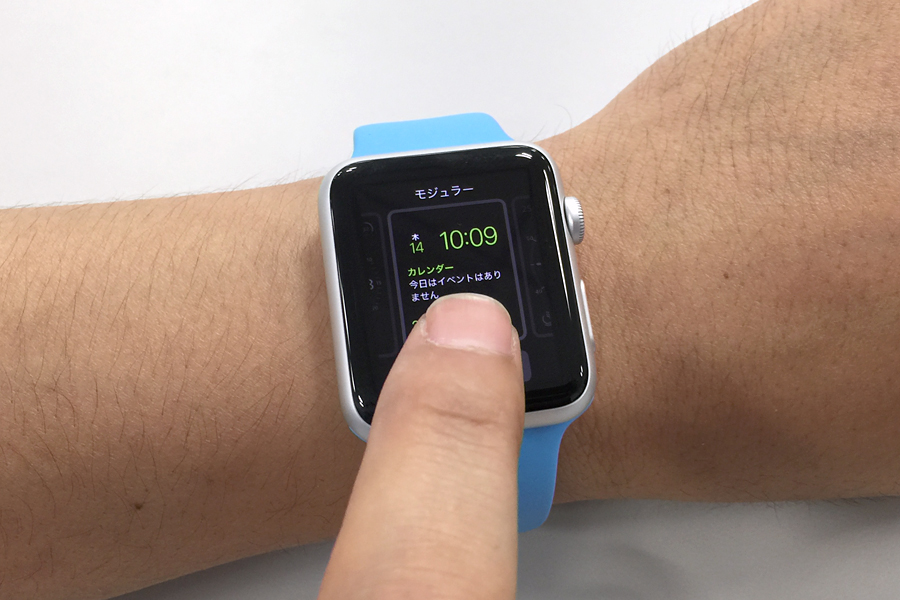 文字盤を表示した状態で強めにタッチすると、文字盤のデザインを変更できる。強めのタッチは、いろいろなシーンで利用するので、覚えておきたい操作だ。長押しとは違うので注意したい
