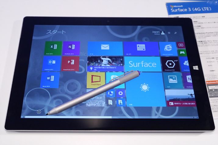 10.8型液晶ディスプレイを搭載するSurface 3。個人向けは4G LTEモデルのみを用意。法人向けにはWi-Fiモデルもラインアップする