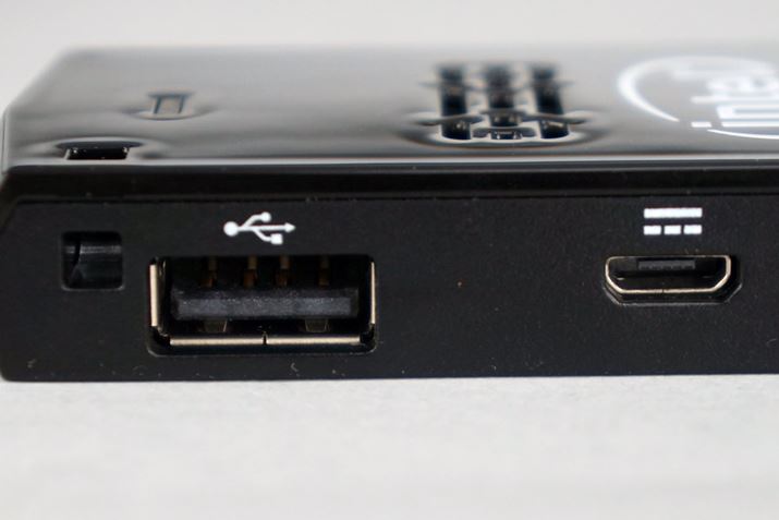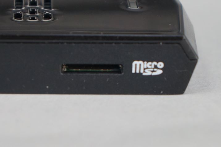 microSDメモリーカードスロットも、スティックPCに標準的に備わるインターフェイスだ。スティック型PCの限られたストレージ容量を増設できるので大容量のメモリーカードと組み合わせたいところだ