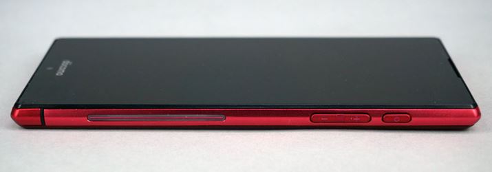 今夏モデルであるSH-03Gは、従来機種のSH-01Gと同じく、約5.5インチのIGZO液晶を搭載する大型モデルである。サイズは、従来の約76(幅)×141(高さ)×8.9(厚さ)mmで重量約159gから、約76(幅)×141(高さ)×8.3(厚さ)mm、重量約150gと、わずかに薄く・軽くなっているが、サイズの大きなスマートフォンであることに違いはない。