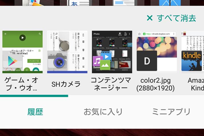 タスクの切り替え画面など、マテリアルデザインらしさが抑えられており、シャープ独自の画面デザインが貫かれている