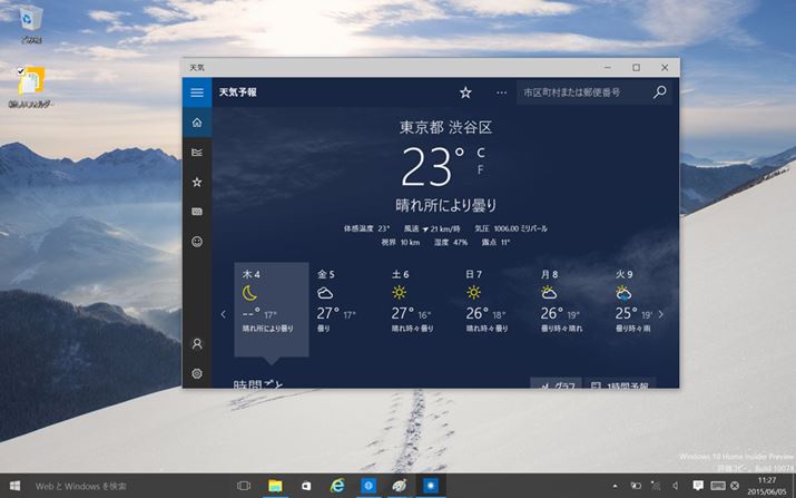 また、Windows 8/8.1では強制的に全画面表示となっていたストアアプリだが、Windows 10ではウィンドウ表示が可能となった。ビジネスユーザーであれば、デスクトップでの作業が中心で、複数のウィンドウを開いた状態で作業することが多いはずだ。このため、常に全画面表示で起動するストアアプリは使いにくいとの声があった。ストアアプリがウィンドウ表示できるようになったことで、Windows 7ユーザーが感じる使いにくさが解消されている。