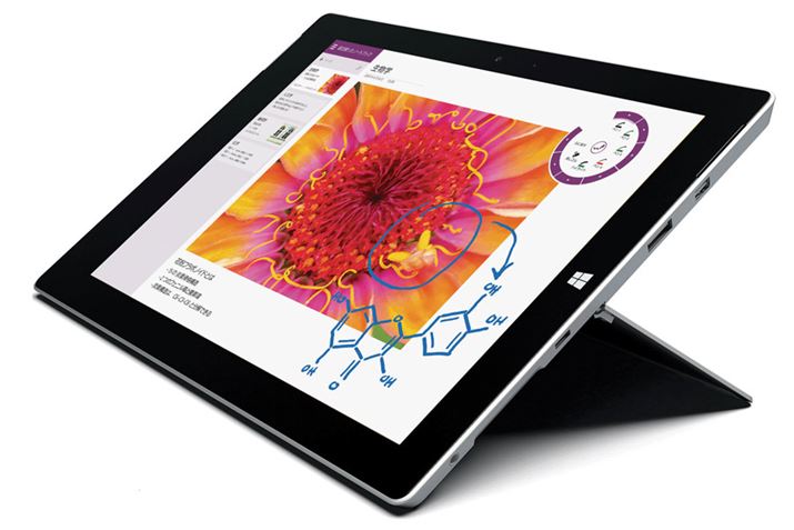 「Surface Pro 3」と同様、「Surfaceペン」による手書き入力もサポートする。筆圧感知や画面が手に触れても使うことができる機能を備えているので、使い勝手がペンと紙に近い。小さな子供が使う場合にも適しているだろう。