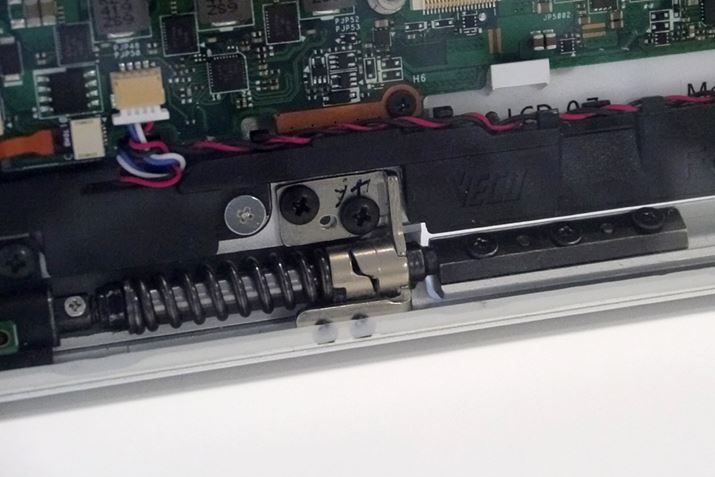 「フリースタイルスタンド」というスタンド機構を備えており、タブレット単体で自立するのも特徴だ。ペン入力時に本体を好きな角度に調節できて、筆圧をかけても簡単に傾かない独自のスタンド機構だ。大きなスプリングとオイルダンパー、それにカムの機構を搭載したもので、実に不思議な動きをする。通常、スタンドの角度を調節するときは手でスタンドを抑えなければならないが、本モデルは手で補助することなく、本体を倒したり、起こしたりできる。強さも絶妙で、強めにペンで入力しても、安定した入力が可能だ。使い終わってスタンドを閉じるときに少し力を必要とするが、作業中に簡単に角度を調節できるのは、ペン入力を多用するイラストレーターや漫画家にとっては、ありがたいのではないのだろうか。