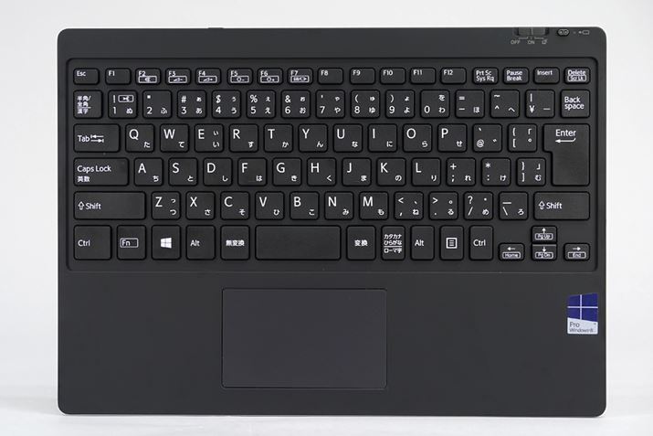 キーボードは19mmピッチのフルサイズ。薄型だが1.35mmのストロークを確保しており、見た目よりも断然打ちやすかった。タッチパッドも広めに取られており、キーボードの操作性は高い。英語配列のキーボードも選べる