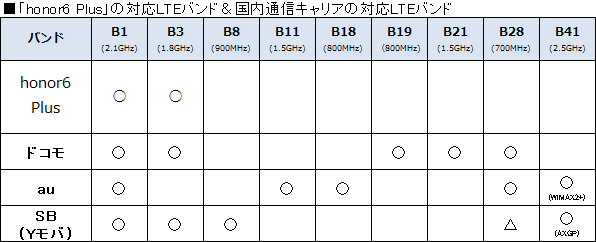 ※本記事では、LTEバンドの対応表にauの対応状況を記載しているが、auのSIMカードをSIMフリースマートフォンと組み合わせて利用した場合、バンドが適合していてもLTEネットワークとの接続が行えない場合がある。なお、auの回線を使ったSIMカードでは音声通話やSMSは利用できない。