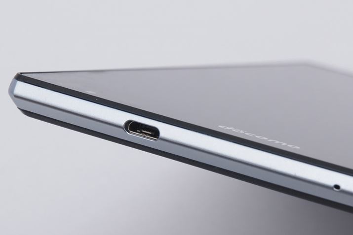 下側面に備わるmicroUSBポートは、Quick Charge 2.0にも対応しておりNTTドコモの「ACアダプタ05」などと組み合わせて、急速充電が可能