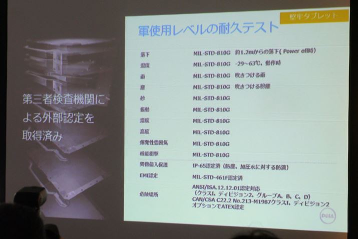 MIL-STD-810Gに準拠した堅牢パソコンやタブレットはいくつか存在するが、Latitude 12 Ruggedタブレットは包括的に多くの項目をクリアしているのが特徴だ