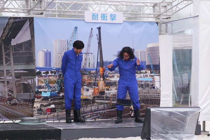 新製品発表会にはロッチの2人がゲストとして登場。Latitude 12 Ruggedタブレットを落としたり、粉じんをかけたりして、その堅牢性をアピールした