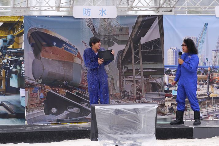 同日に東京都内で開催された発表会には、お笑いコンビのロッチの2人が登場。ボケ担当の中岡創一さんは、芸人になる前に5年間、自動車工場で働いていた経験の持ち主で、町工場芸人としても知られる。そんな中岡さんが、Latitude 12 Ruggedタブレットを実際に落としたり、水をかけたりして、堅ろう性をアピールした。