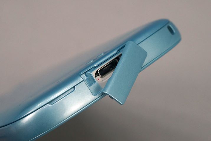 ボディ下面のmicroUSBポートはキャップで覆われている。「急速充電」および「急速充電2」(QuickCharge 2.0)に対応しており、対応のACアダプターと組み合わせて急速充電が行える