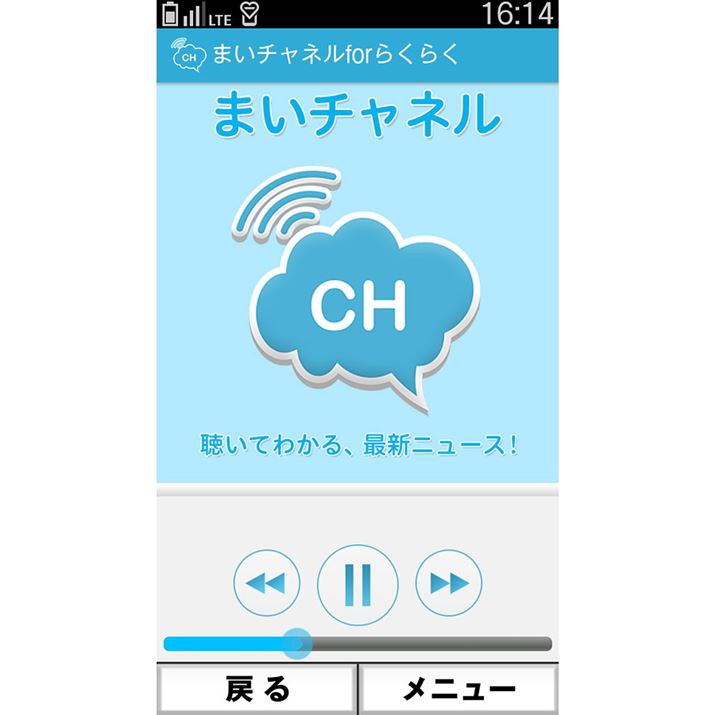 ニュースを読み上げる、まいチャネルforらくらく。音声読み上げ機能をオンにすれば、操作画面やWebコンテンツ、設定などを音声で読み上げてくれる