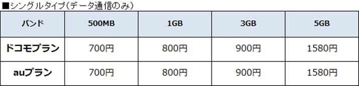 なお、auプランの料金も9月1日より改定され、シングルプランでは、1GBメニューが850円から800円に、3GBコースが980円から900円に値下げされた。デュアルプランも1GBメニューが1460円から1410円に、3GBメニューが1590円から1510円へ、それぞれ値下げされた。
