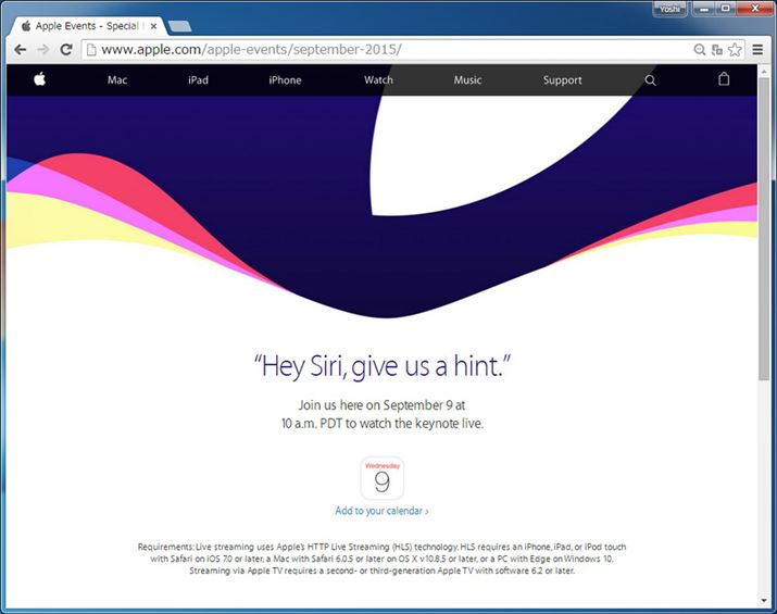 イベントのホームページには「Hey Siri, give us a hint」(Hey Siri、ヒントちょうだい)という言葉以外のくわしい情報は一切ない。試しにSiriにヒントを聞いたところ以下のような、いくつかの答えが返ってきた。