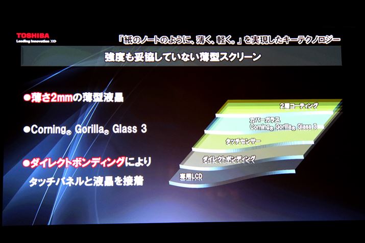薄さ2mmの新型の薄型液晶を採用。液晶とガラスの隙間がほとんどないダイレクトボンディングを用いることで、手書き時の視差を抑えている