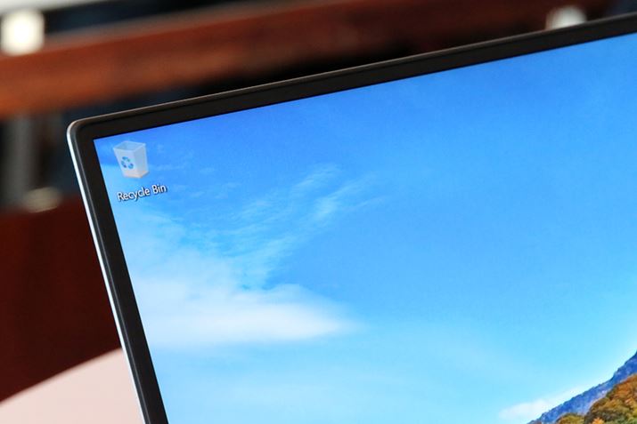 XPS 13のベゼル幅は5.2mm。これだけベゼルが細いと、堅牢性が心配になるが、外装にアルミニウム合金とカーボンファイバーを使用することで、高い強度を確保している。ディスプレイ部分を少し力を入れてねじっても歪んだり、曲がったりしない