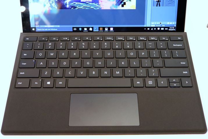浮き石のキーボードを採用したSurface Pro 4 タイプカバー。短い時間しか触れなかったが、打鍵感がアップし、文字入力がしやすくなった印象を受けた