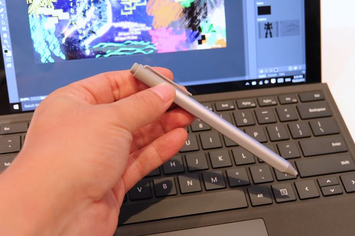 新しいSurfaceペンは、1024段階の筆圧に対応。上部には消しゴム機能を搭載する。Surfaceペンは、マグネットで本体に取り付けられる