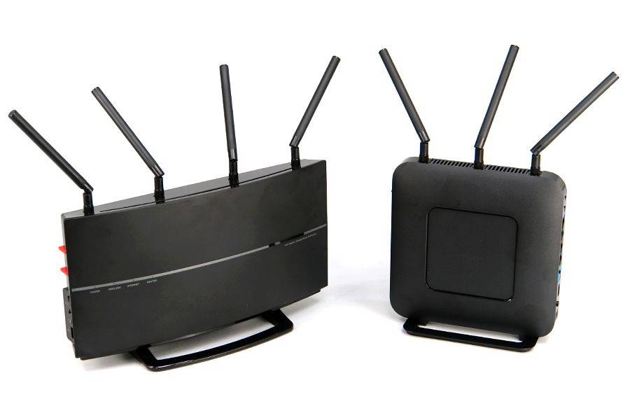 左がWXR-2533DHP、右が3本のアンテナを搭載する「WXR-1750DHP」。電波干渉を防ぐため、アンテナの間隔を取っているため、かなり大型のボディとなっている