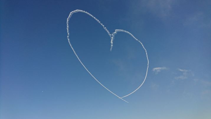 広角レンズは、風景を撮影するのにも便利。入間航空祭で空いっぱいに描かれたハートマークも全体が余裕を持って収まった
