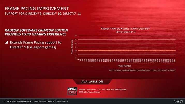 GPU+対応APUやGPU+GPUなどのマルチGPU構成時に発生してしまう、フレームが飛んでしまう現象を回避するFrame Pacingは、新たにDirectX 9対応タイトルをサポート