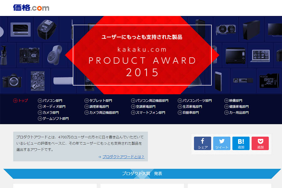 今年2015年も「価格.comプロダクトアワード」が発表になった。「価格.comプロダクトアワード」とは、価格.comユーザーのレビュー評価をベースに、その年にユーザーからもっとも支持された製品を選出する、他にはないユニークなアワード。今年2015年は、このアワードがスタートして10年という節目の年となっている。そこで、価格.comマガジン編集長の鎌田剛が、「価格.comプロダクトアワード」の10年の歴史を製品部門別に振り返った。パソコンやAV家電、生活家電、カメラといった部門の大賞受賞製品から、各部門の「過去、現在、そして未来」を解説する。