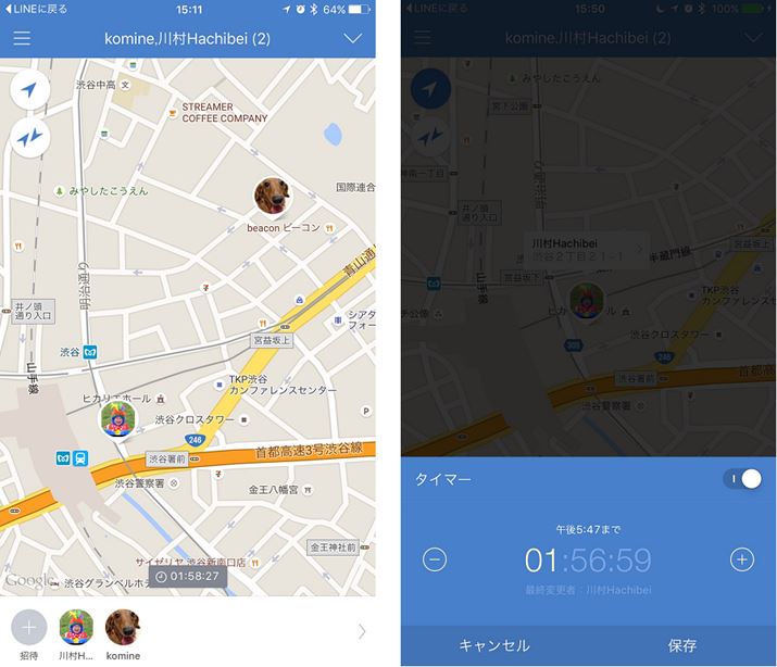 LINE HEREは、LINEユーザー同士はもちろん、Facebookユーザーであれば、使っている端末がiPhoneでもAndroidでも位置情報を共有可能。なお位置情報の共有は最大24時間までで、任意で一時的にオフにできる