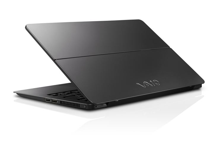 天板のVAIOロゴが中央に配置されたクラムシェルモデル。写真はブラックモデル