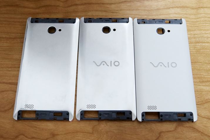 ボディは、パソコンのフラグシップモデル「VAIO Z Canvas」のデザインを再現。外装にはアルミニウムと強化ガラスを使っている。アルミ合金の塊から削り出したボディは、20数工程かけて作られており、質感が高く、所有欲をくすぐるような仕上がりだ。レーザーエッチングで彫り込まれた背面のVAIOロゴもいい味を出している。また、端末自体は海外で製造するが、長野県の安曇野工場にて、仕上げを行い、全数チェックを実施。パソコンと同じように、「安曇野FINISH」で高い品質を担保する。