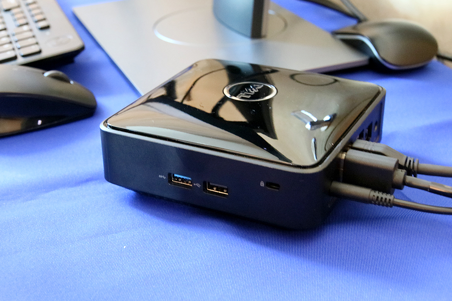 New Inspiron マイクロデスクトップは、インテルの小型PCフォームファクター「NUC」のような超小型のデスクトップPC。本体サイズは約131(幅)×131(奥行)×52.5(高さ)mmで、置き場所を選ばないのが特徴だ。コンパクトなボディでありながら、ギガビットLAN、フルサイズのDisplayPortとHDMI出力ポートを搭載しており、ミニタワークラスの拡張性を備える。
