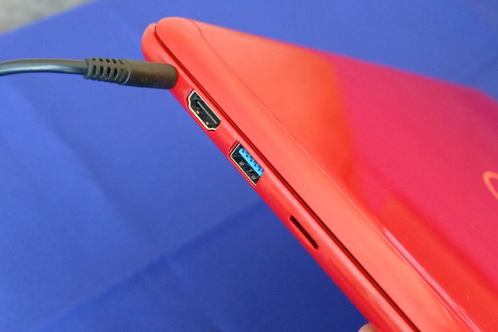 フルサイズのHDMI出力ポートとUSB3.0ポートを搭載。スマートフォンで撮影した写真や動画の取り込みに利用できるmicroSDメモリーカードスロットも備える