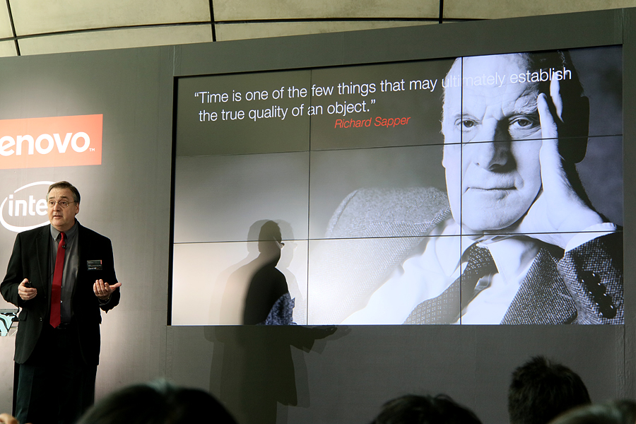 David氏は、ThinkPadデザインの生みの親であり、昨年2015年に亡くなったプロダクトデザイナー、Richard Sapper氏のコメントを紹介。同氏が生み出したThinkPadの革新的なデザインは、20年以上経った今も受け継がれている