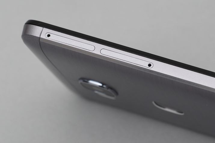 そのデザインを細かく見ると、表面にヘアライン加工の有無など違いはあるが、同社が2014年12月に発売した「Ascend Mate 7」の面影がある。SIMカードアダプターも凝った金属製トレーで、細部へのこだわりを感じる。カラーバリエーションは、ゴールド、シルバー、グレーの3色が用意される。本機のボディは魅力的ではあるが、背面の上下に取り付けられた細かいドット模様のパーツの取り付けがわずかではあるが甘く、指先や手のひらの感触でわずかに引っかかりを感じた。