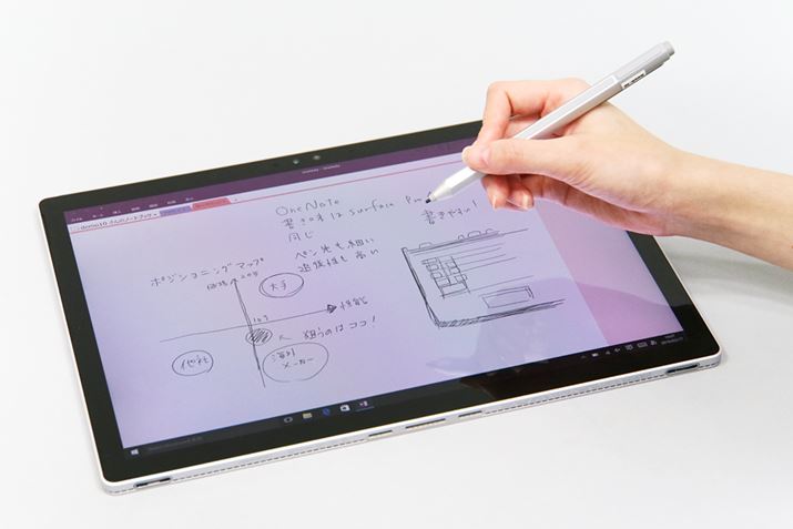 Surfaceペンを使った手書き入力が可能。遅延がなく、滑らかな書き味で、本格的なイラスト作成にも使えそうだ