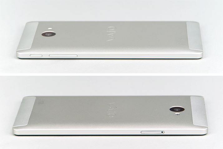 VAIO Phone Bizは、5.5型(1080×1920のフルHD)の液晶ディスプレイを搭載する。スマホとしては大きな部類に入るため、片手で操作するのは難しそうだ。アルミニウムの削り出しで製造されたボディは、パソコンのVAIOと同じく、シンプルで質感が高い。レーザーエッチングで深めに彫り込まれた背面のVAIOロゴも存在感があっていい感じだ。ビジネスユースを意識したモデルではあるが、個人用のスマホとして使っても違和感がないほど洗練されている。デザインや質感は、VAIOらしさが感じられる仕上がりだ。