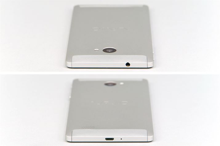 ヘッドホン出力端子(ヘッドセット対応)は上面に備える。底面には充電などに利用するmicroUSB端子とモノラルマイクを搭載