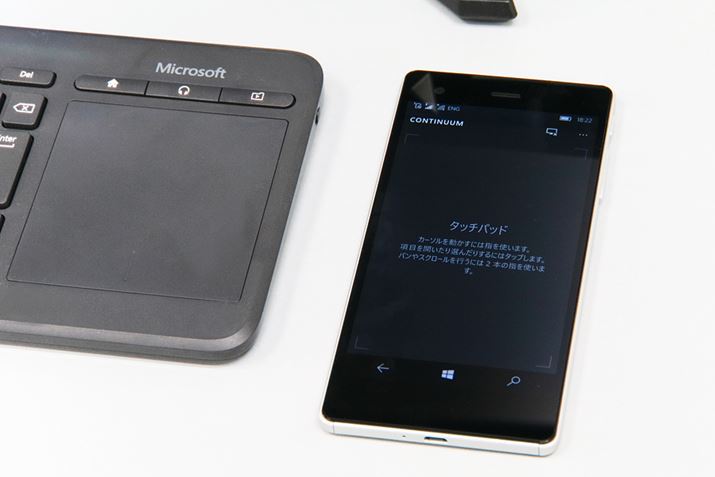 Continuum利用中は、VAIO Phone Bizをタッチパッドとして利用できる。キーボードだけ接続し、カーソルはVAIO Phone Bizで動かすといった使い方が可能だ
