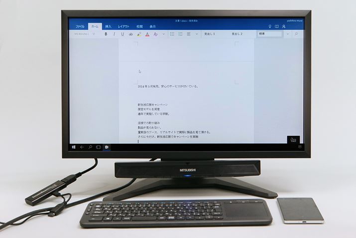 「Word」で文書を作成してみたところ、文字入力やカーソルの動きがワンテンポ遅れることがあった。それでもスマホの小さな画面やソフトウェアキーボードで文字を打つよりも、かなり快適に作業できる