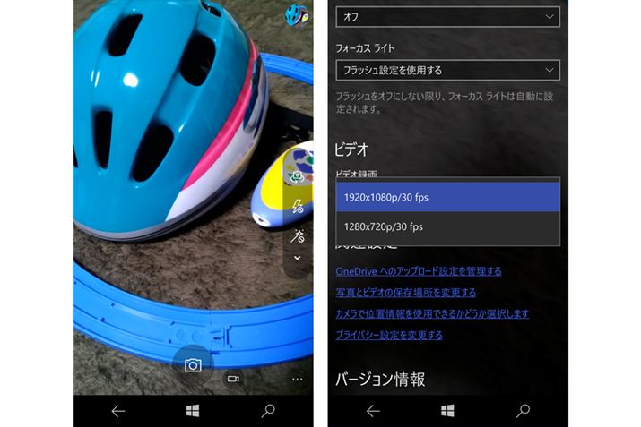 リアカメラは1300万画素、フロントカメラは500万画素。カメラはそれほどウリにしていないが、1920×1080/30fpsの動画撮影やバースト撮影など、多彩な機能を備える